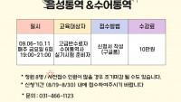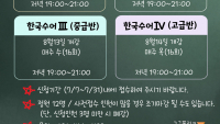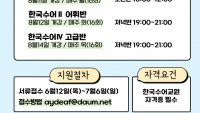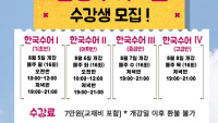 안녕하세요. 2024년 8월에 안양 수어교실이 개강될 예정입니다. (기초반에서 중급반으로 바로 가기 부담스러우신 분들께서는 어휘반을 들으시면 큰 도움이 될 것입니다.) 여러분의 많은 관심과 신청 바랍니다. ...