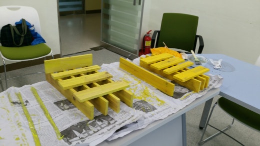 오늘은 먼저 사포질후 바로 색칠을 하였답니다. 사이사이 좁은 공간이 많아서 먼저 색칠후 못질을 하기로 했답니다.