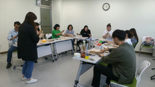 2018년 한국복지대 생활목공 DIY - 8회차(2018년 5월10일 목요일)이제 제법 덥다고 느껴질만큼 여름이 성큼 다가왔습니다.~~오늘은 미니선반을 만들었습니다.이제는 재료만 나눠 드려도 알아서 사포질도 못질도 잘 한답니다.오늘은 먼저 사포질후 바로 색칠을 하였답니다. 사이사이 좁은 공간이 많아서 먼저 색칠후 못질을 하기로 했답니다.모두들 알아서 척척 잘 만드시고, 결석한 동료들 것도 서로 맡아서 대신 잘 만들어 주는 모습이 참 보기 좋았습니다.~~이제 앞으로 2회만 더 하면 목공수업이 끝납니다. 결석하지 마시고, 작품 완성해서 가져 갈수 있도록 부탁합니다.~~그럼 다음주에 또 만나요~~^ㅎ^