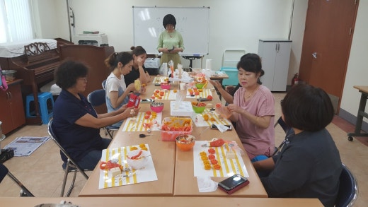 요즘 장마철인데요, 오늘은 캘리그라피 "붓으로 전하는 마음의 소리" 10차 교육이 있는 날이었어요. 쓸 글귀를 정한 후 종이에 연습하고 나서, 우산에 본격적으로 쓰는 수업을 했는데요, 어르신들 모두들 열심내시는 ...