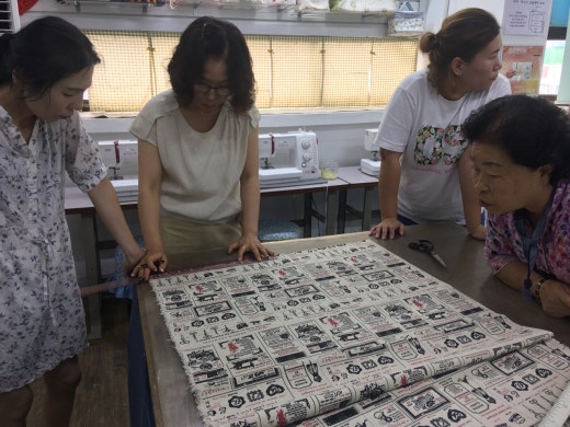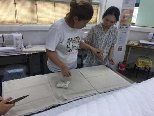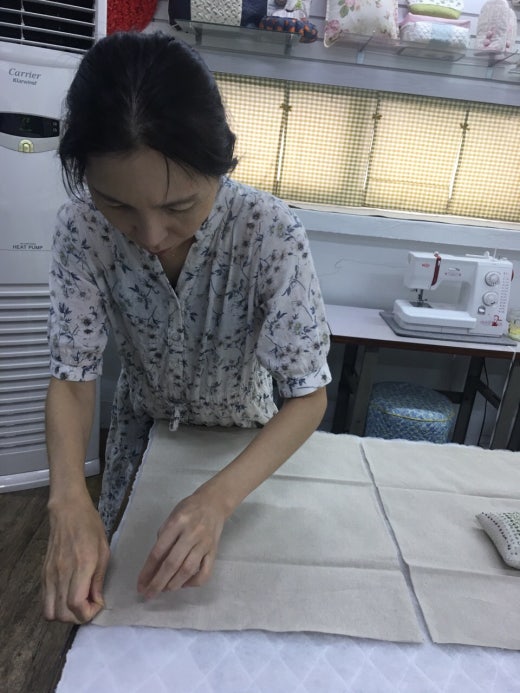 저희는 오늘 시원한 한국일반문화센터에서 에코백 제작을 위하여 직접 천을 자르면서 수업을 진행하였습니다.