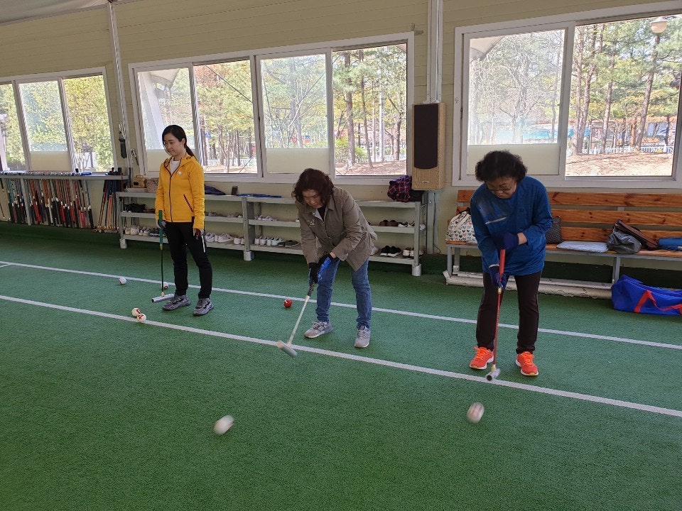 게이트볼교실 05회_2019.04.22 #게이트볼교실 오늘은 조금 멀리 있는 공을 잘 맞출 수 있는 방향교육을 진행하였습니다. 또한 오늘도 저번주에 이어 반복연습이 진행되었습니다. 자신의 공(자구)이 다른사람의 공(타...