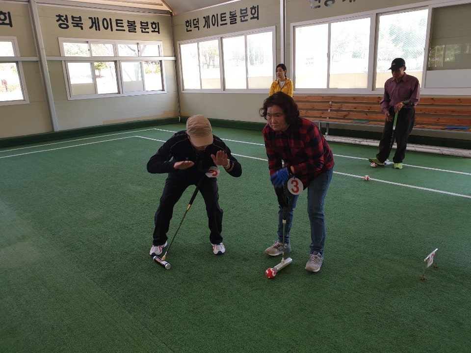 게이트볼을 잘 칠 수 있는 방법은 자세를 바로 잡은 후 본인의 공(자구)와 다른 사람의 공(타구)가 일치 된 후 쳐야하는데요. 강사님 말씀으로는 기술도 중요하지만 무엇보다 중요한 것은 집중력이 제일 중요하다고 말씀하셨습니다. ^^
