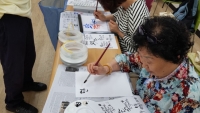 요즘 장마철인데요, 오늘은 캘리그라피 "붓으로 전하는 마음의 소리" 10차 교육이 있는 날이었어요. 쓸 글귀를 정한 후 종이에 연습하고 나서, 우산에 본격적으로 쓰는 수업을 했는데요, 어르신들 모두들 열심내시는 ...