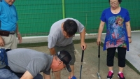 게이트볼 교육 및 연습으로 구슬땀을 흘리는 회원님들~! 무더위도 막지 못하는 뜨거운 열정에 박수를 보낸다.