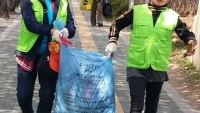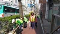2015년 4월 11일 지역환경미화봉사활동하는 모습