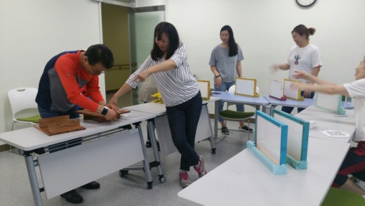 2018년 한국복지대 생활목공 DIY - 9회차(2018년 5월17일 목요일)후텁지근한 날씨로 불쾌지수가 많이 상승하는 오늘입니다. 그럼에도 불구하고 참석하셔서 열심히 하는 모습이 참 보기 좋았습니다.~~실질적으로 오늘로 작품들을 마무리 하는 시간이었습니다. 강사님께서 선물로 주신 냄비받침을 꾸미는 시간도 가졌으며 완성은 다음주에 하기로 했답니다.지난시간에 완성 못한 미니칠판과 미니 선반을 완성한 자신들의 모습에 뿌듯한 사람도 있고, 작품이 맘에 안들어 아쉬워 하는 사람도 있었습니다.~~^♧^이제 생활목공DIY 수업이 다음주가 10회로 마지막입니다. 다음 시간에는 수료식과 간단한 다과회로 마무리를 하려고 합니다. 한 분도 빠지지 마시고 참석해서 즐겁게 마쳐요.^^♡^^그럼 다음주에 만나요~~^ㅎ^