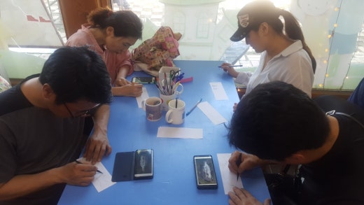 5월 29일(화)에 평생교육 캘리그라피 4차 교육이 진행되었다. 이날은 각자가 좋아하는 글귀를 선택해서 작은글씨로 엽서에도 써보고, 서화판에도 직접 써보는 시간을 갖었는데, 모두들 작품이된다는 사실에 사뭇 떨면...