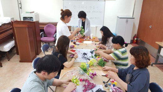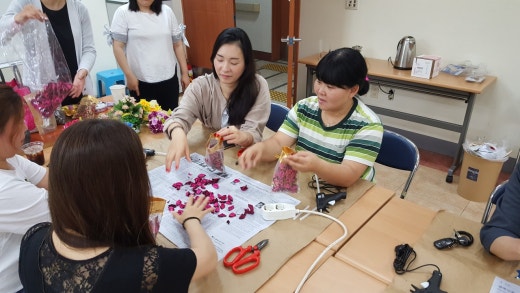 2018년 평생학습특성화 사업 "꽃차,향긋한 건강을 마시다." 8회차 (2018.05.18) 안녕하세요 ^^ 지난 주 꽃차에 대한 프로그램 공지를 늦게 올리게 된 점 이해 바랍니다. 5/18 수업에서는 예쁜 향주머니를 만드는 시간을 가졌습니다. -향주머니 만드는 방법은 ~? * 재료 : 포푸리, 주머니, 글루건, ,글루건심, 조화 1. 포푸리(말린꽃)를 주머니에 넣기 2. 리본으로 묶기 3. 조화를 이용하여 예쁘게 꾸미기 아주 쉽죠~? 집에서 간단하게 만드실 수 있으니 한 번 도전해 보시는게 어떨까요 ~? ^^